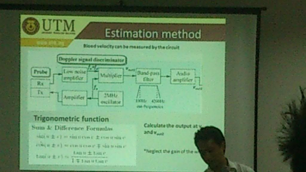 We also have to answer some problem related to series and parallel circuit including capacitors and resistors. Derivation of trigonometry functions is required to solve the problem.-->(Please mastering your M.A.T.H.S) There was also estimation method that we have to analyze in order to get it function, that is Doppler Signal Discriminator.