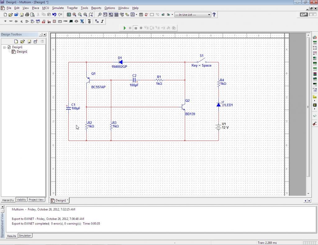 OK, that's all about Electronic Workshop that I can tell and feel the environment. Now, let's get started with En. Redzuan's class. Today, we are going to run Multisim software. MULTISIM? (,'') What kind of that software? Such a weird name. But we all are really lucky having En. Redzuan to brief some of the usage of this Multisim. He started with the introduction to Multisim. Actually this software is under National Instruments Corporation. You can refer this website in order to know more about NI.. http://en.wikipedia.org/wiki/National_Instruments .. --> Ask Mr. Wiki XD! After that, we started to search for some skills in Schematic Capture. This included 1. Opening and saving files. As you have been familiar with Microsoft's software such as Powerpoint, Word or Excel, you can use your experience using them to the same way as you open or save files in this software. There's no difference. Plus, you also can choose to save your project first or after your project done. But watch out for some PC, there will be some trouble in order to save your project. En. Redzuan had told us the software always get 'hang' and you cannot save your project if that problem arise. (Thank Allah, my PC really kind on me for this time :) ). 2.Placing the component. After all have been done about open and save files, we are going to place some electronics components with the given diagram. Oh, I almost forget. Once we enter the class this morning. En. Redzuan had spread one worksheet, that is WORKSHOP 2. There are two diagrams available there, but we only have to do the one without IC 555. The components that involves in this diagram is LED, transistor P-N-P and N-P-N, capacitors and also resistors. There also one buzzer involve, but we just ignore it as on request from En. Redzuan. (I also don't know whether the buzzer will works or not).